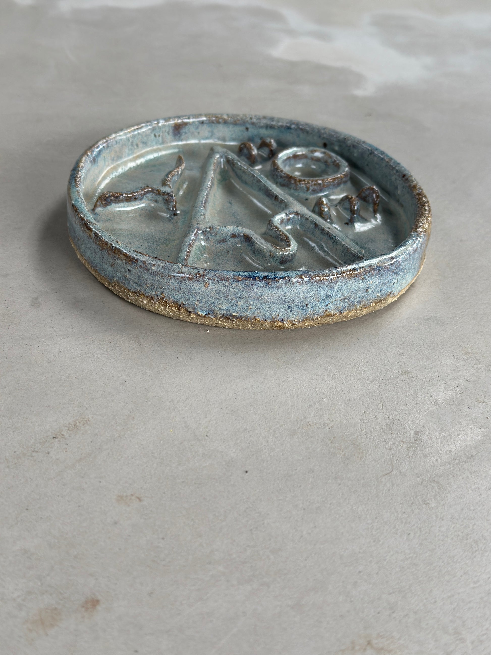 Handcrafted stoneware ceramic cat slow feeder.