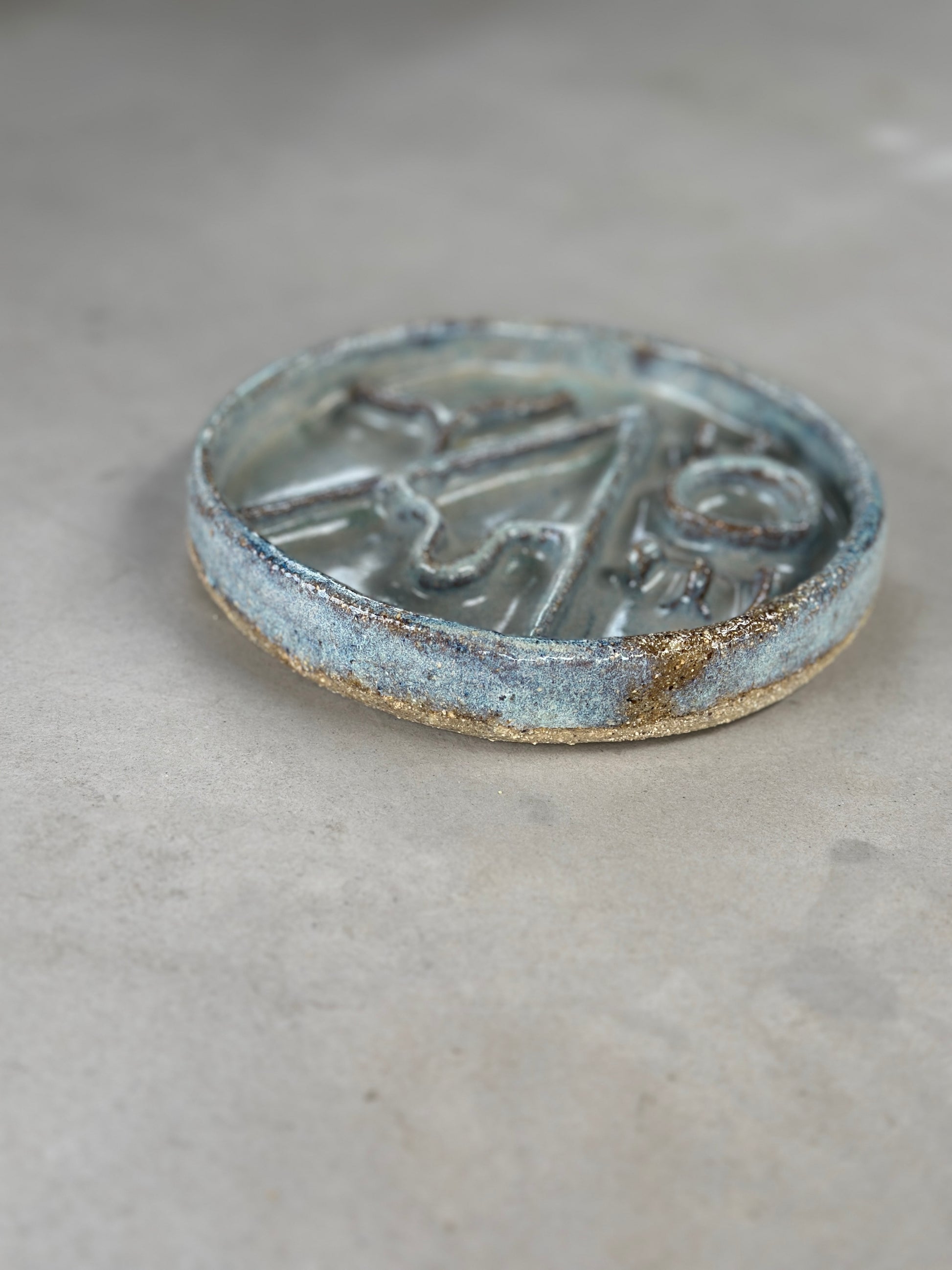 Recycled clay with green/blue glaze.
